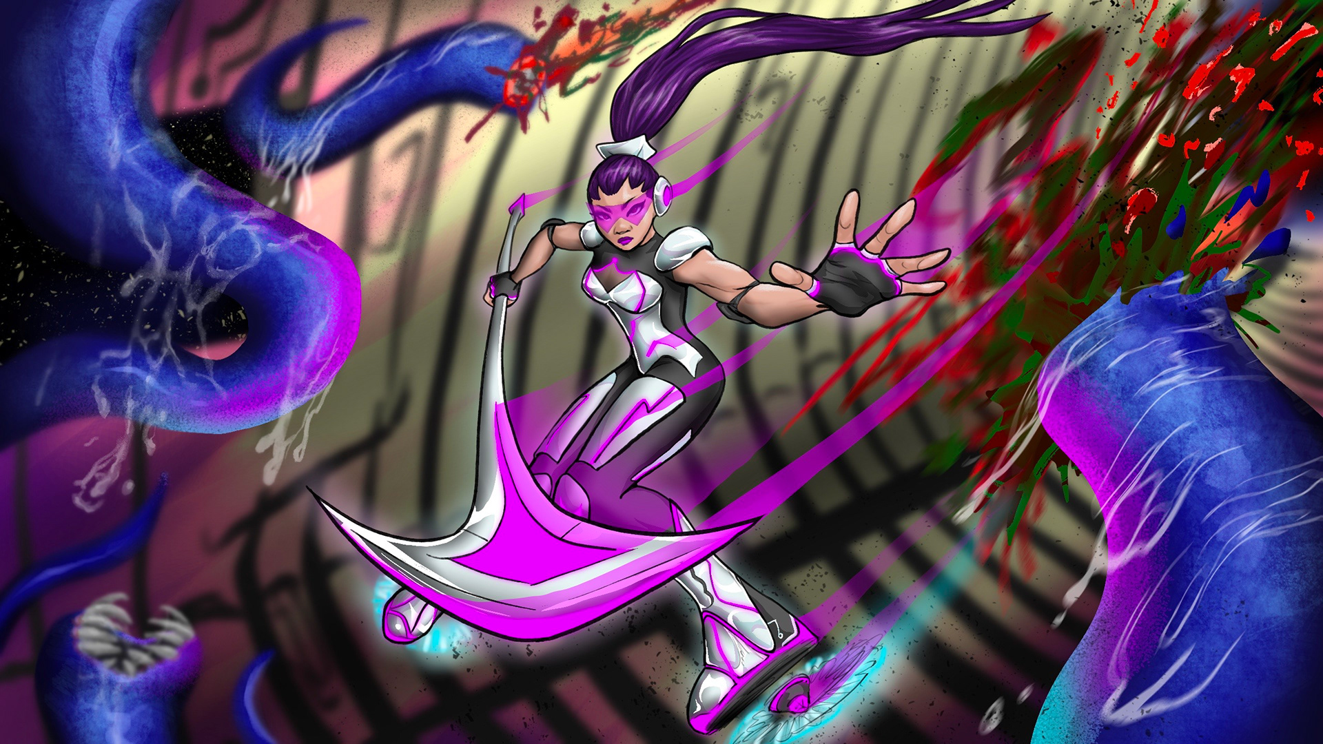 Created for a collaboration project for mock video game character designs. This character is the female protagonist, based in a futuristic sci-fi world where parasitic monsters have invaded the land. Calm, collected, and ready to kill--she's not one to mess with.
